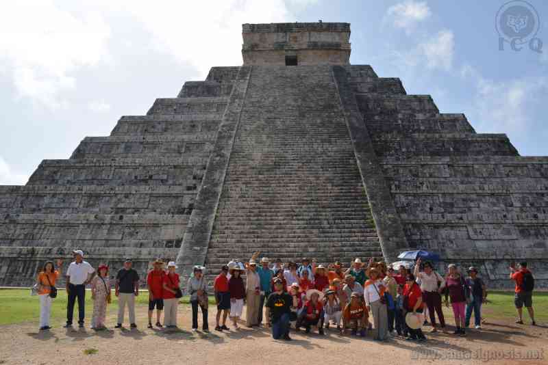 Uno de los grupos que se formaron para la explicación esotérico gnóstica, al pie de la piramide de Kukulkan.