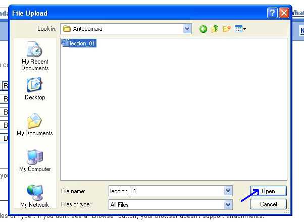 De clic izquierdo en el botón “Browse…” para elegir el archivo a adjuntar o anexar.