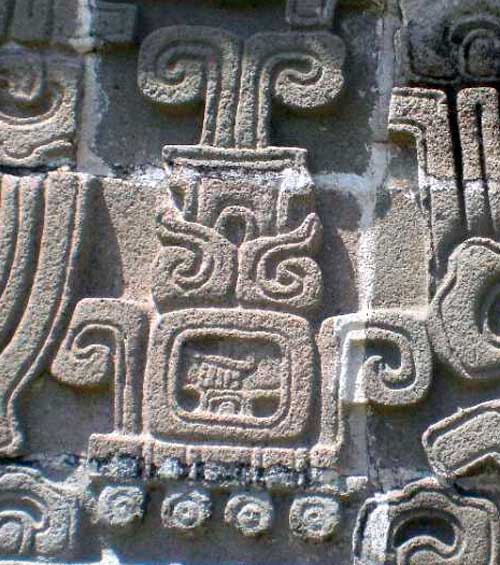 Se debe señalar que en el tablero de las correcciones (parte frontal derecha del templo), encontramos símbolos muy interesantes: primero se encuentra el glifo “Casa” (calli en náhuatl), representando la casa de nuestro Ser que debemos fabricar para que se manifieste, se trata de los cuerpos solares, ya que los que tenemos son lunares, es decir fantasmales, fríos; 10 puntos se encuentran bajo este símbolo de “Casa” representación de los 10 sephirotes, semillas divinas, las 10 dimensiones que conforman el Árbol de la Vida.