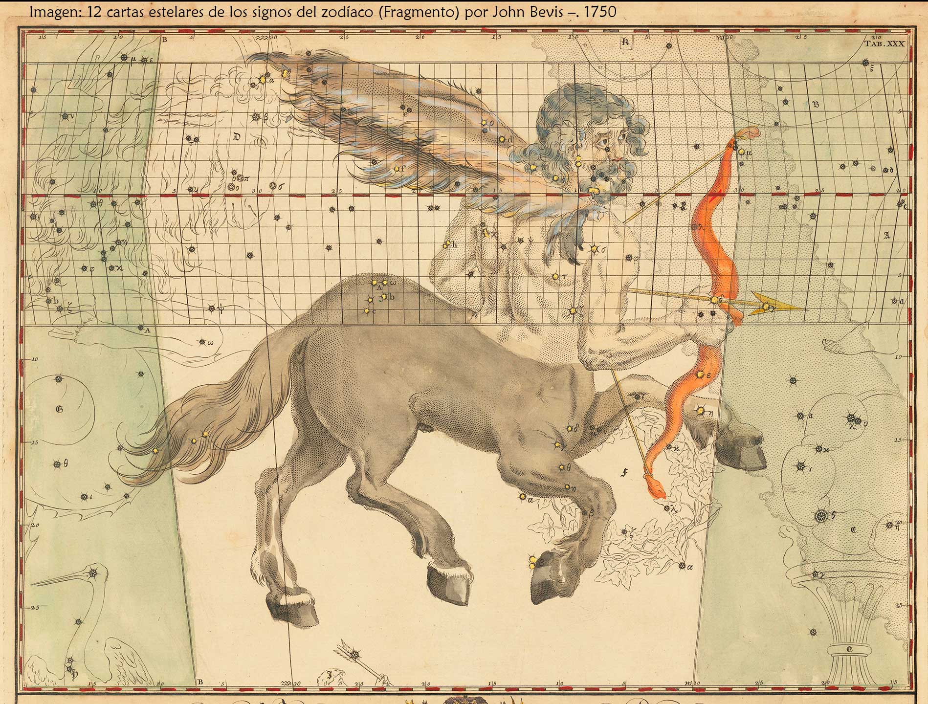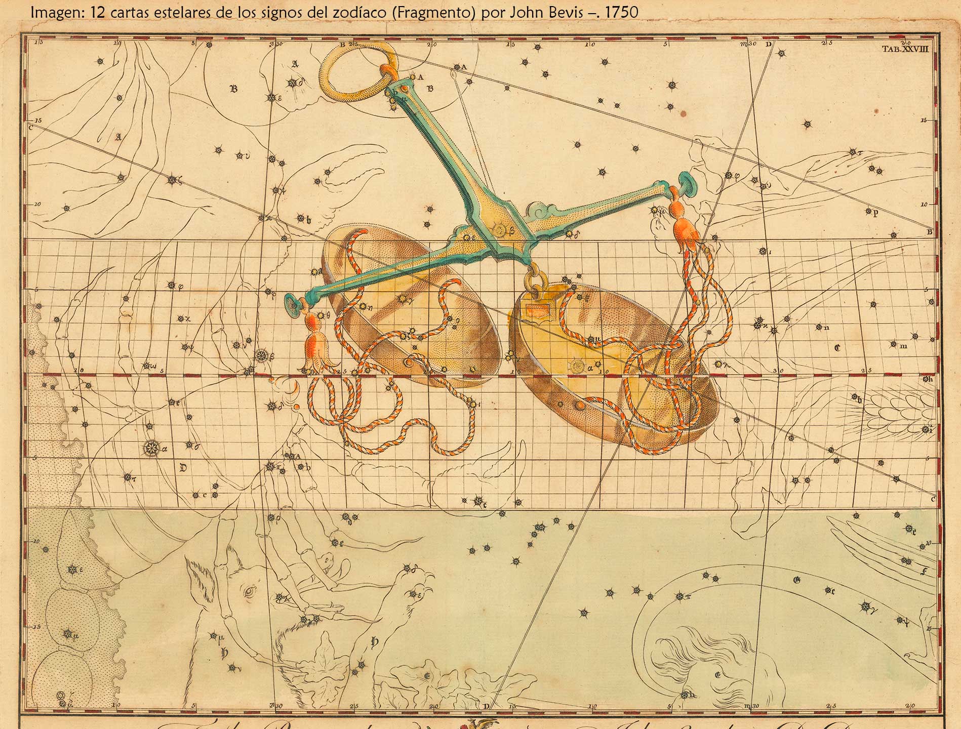 Imagen: 12 cartas estelares de los signos del zodíaco por John Bevis –. 1750
